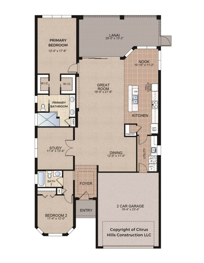 Part of the care-free home series at the Villages of Citrus Hills, the St. Christopher is a 2 bedroom, 2 bath home which has just shy of 2,000 square feet of living space.